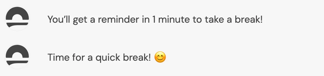 Can you remind me in 1 minute to take a break?